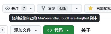 打开仓库: CloudFlare-ImgBed,点击右上角的复刻(Fork),将该仓库复刻到自己的Github账号下