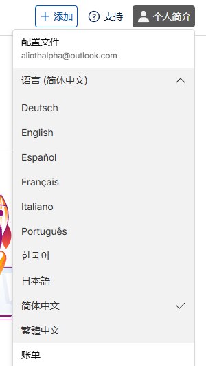 点击右上角的个人简介,将主页修改为中文